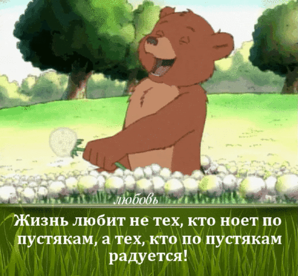 8. Гифка Жизнь любит не тех, кто ноет по пустякам, а тех, кто по пустякам радуется!