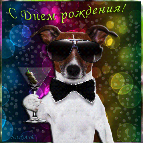 8. Прикольная гифка мужчине с днём рождения с собачкой!