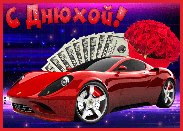 2. Мерцающая анимированная картинка мужчине с днём рождения с машиной!