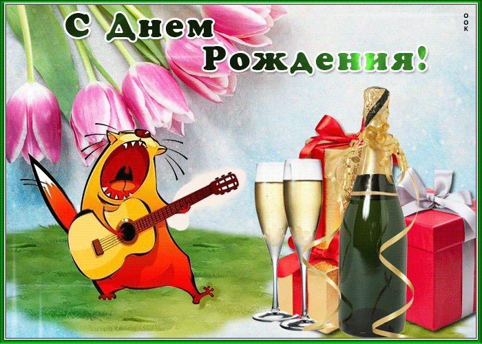4. Анимационная открытка мужчине с днём рождения с шампанским!