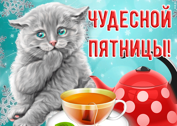 7. Зимняя анимированная гиф картинка Чудесной Пятницы от киски