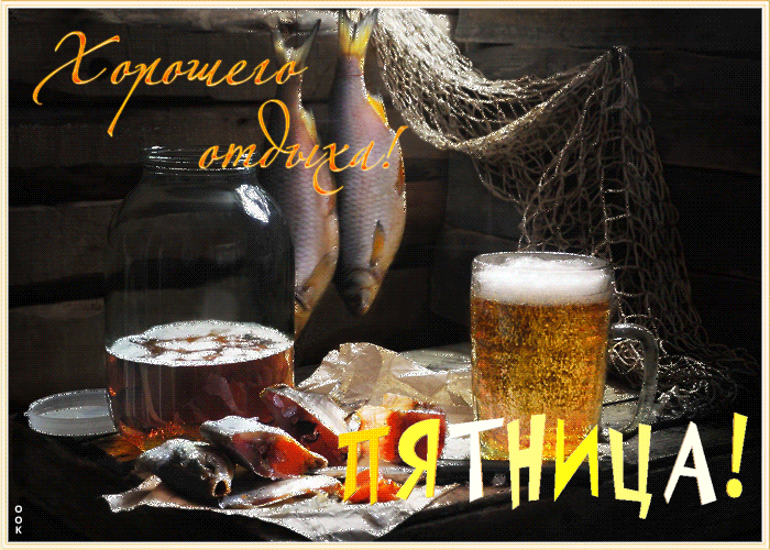 10. Гифка с пожеланием хорошей пятницы для мужчины с пивом и рыбкой!