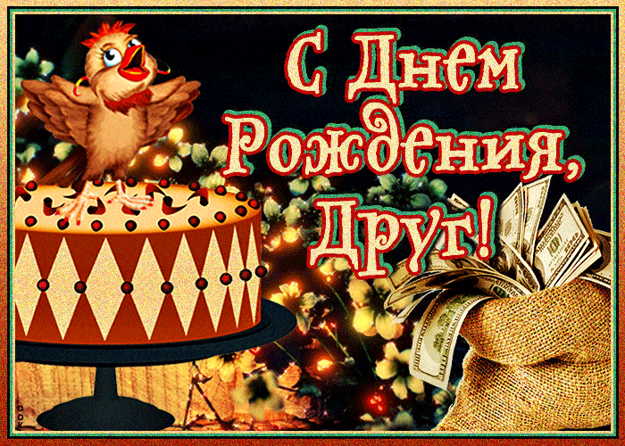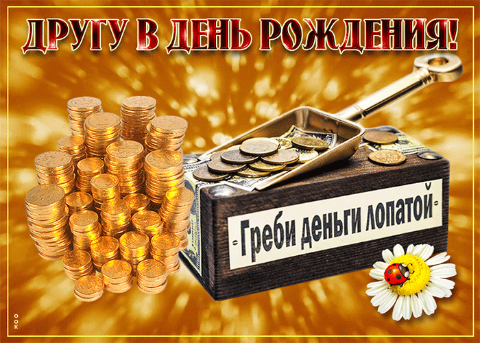 15. Классная анимационная gif картинка с днём рождения мой друг с кучей денег!