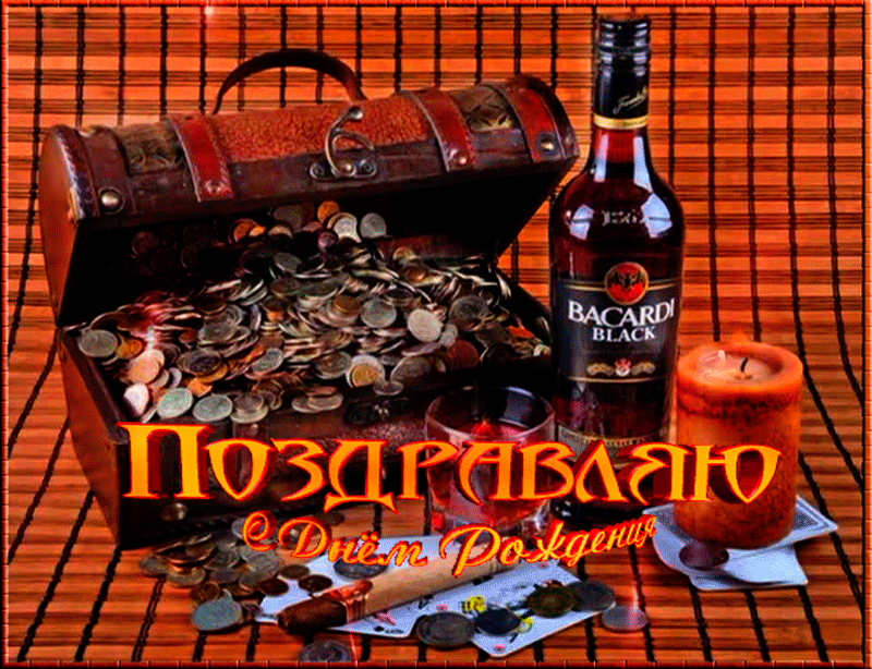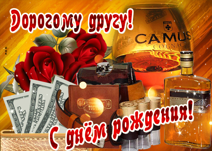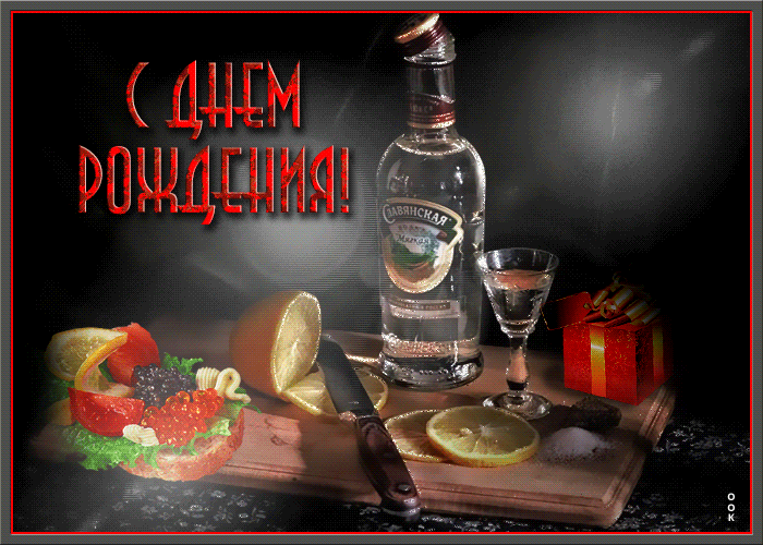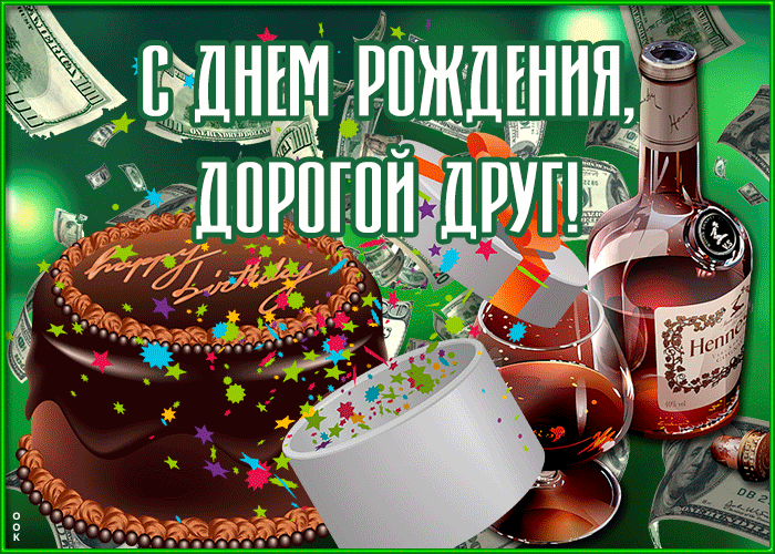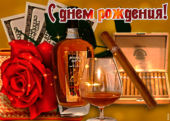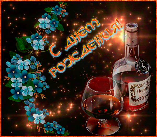 30. Мерцающая gif картинка с днём рождения для друга с коньяком!