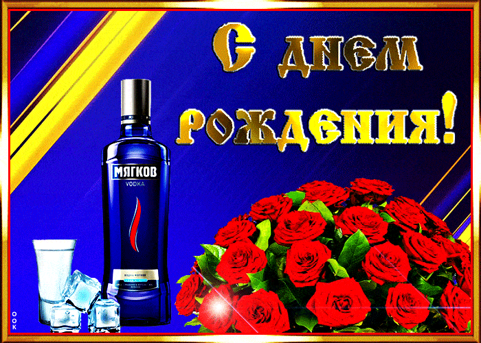 12. Блестящая картинка на день рождения другу с розами и водкой!