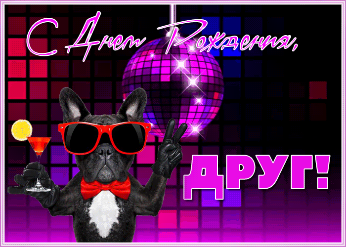 16. Диско гиф картинка с днём рождения, друг собака и диско шар!