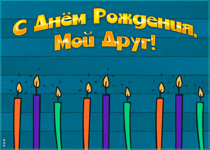 19. Прикольная gif картинка со свечками и поздравлением с днём рождения, мой друг!
