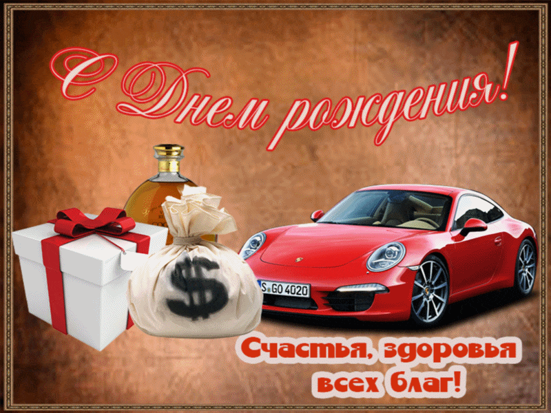 14. Мерцающая гиф открытка с машиной на день рождения другу!
