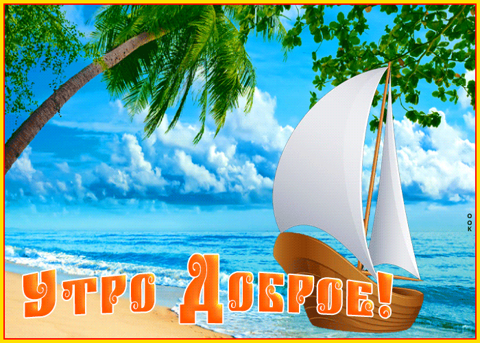 9. Гифка доброе утро, море, солнце, пляж и кораблик!
