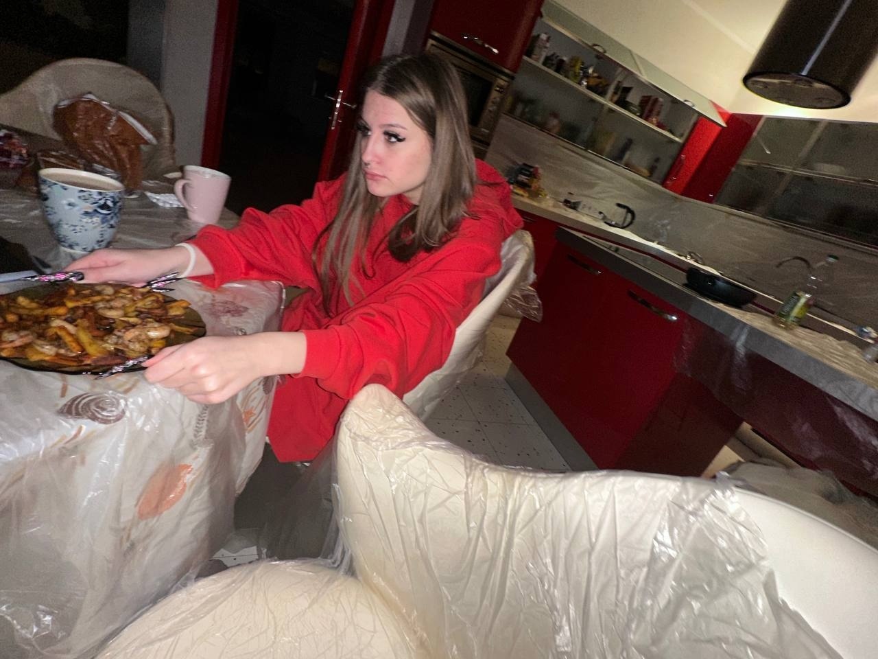 Смешные фотки где Эвелин хомячит хинкали.