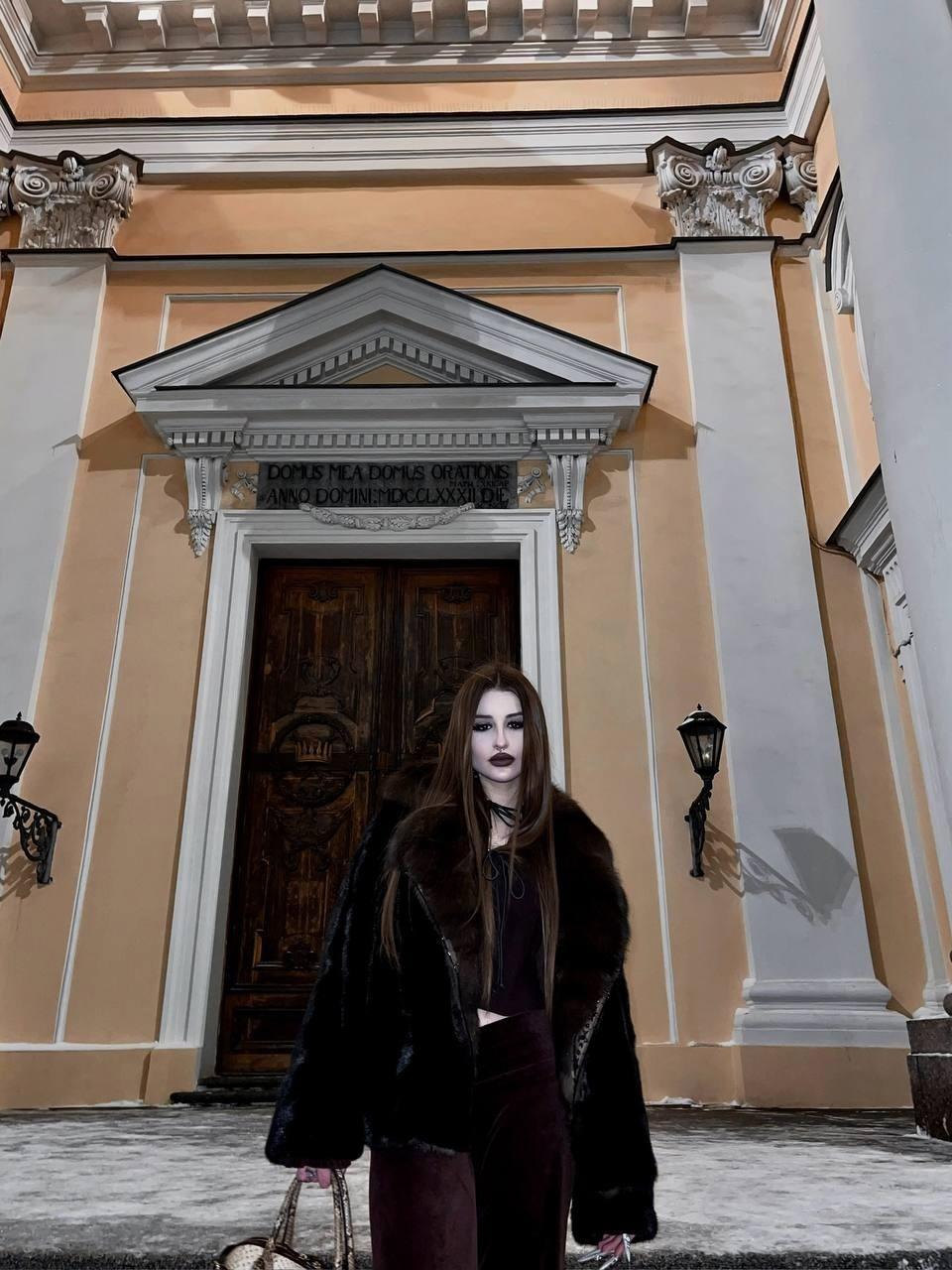Госпожа Эвелин у храма на фото из ТГ.