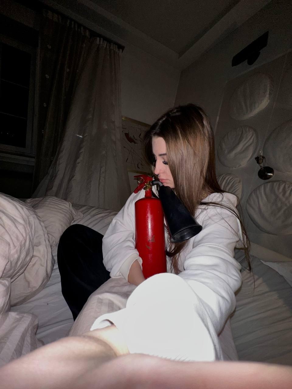 Смешной кадр с Эвелин слиты в сеть в прозрачном платье, чёрном нижнем белье и с огнетушителем в рках.