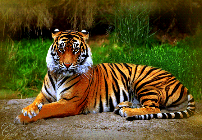 Сам родился в год тигра. Самая крупная кошка мира. Обладает мощью, грацией и мистическим взглядом, который способен ввести в транс, если смотреть ему в глаза. Полосатая красивая кошка получает серебро.