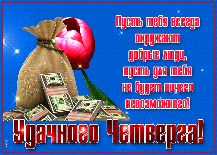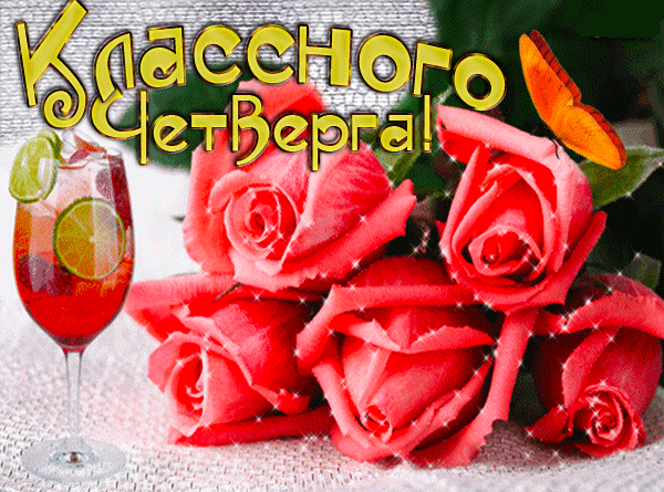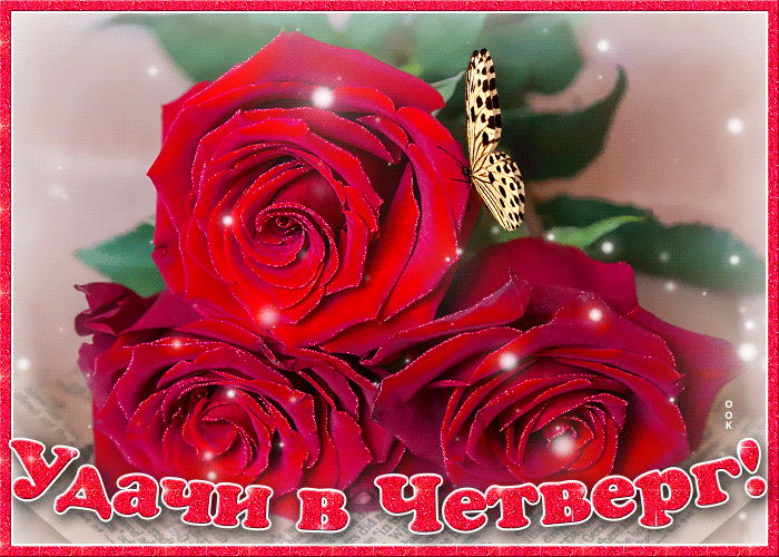 4. Анимированная мерцающая открытка с розами и пожеланием удачного четверга!