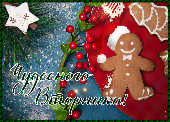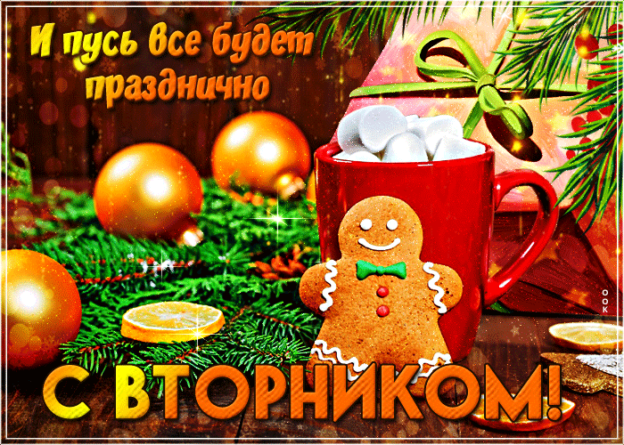 1. Красивая гиф картинка с пожеланием лёгкого зимнего вторника и приятных новогодних хлопот!
