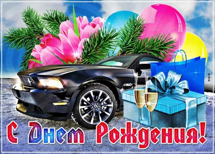 1. Красивая зимняя гифка с днём рождения мужчине со снегопадом и машиной!