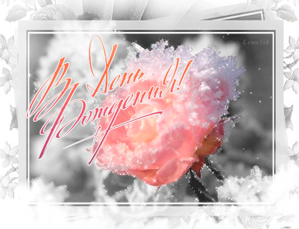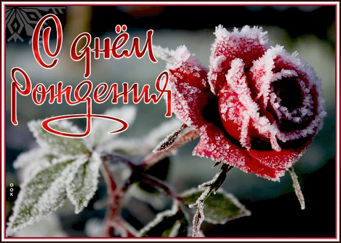 3. Зимняя анимированная gif картинка с днём рождения мужчине с розой!