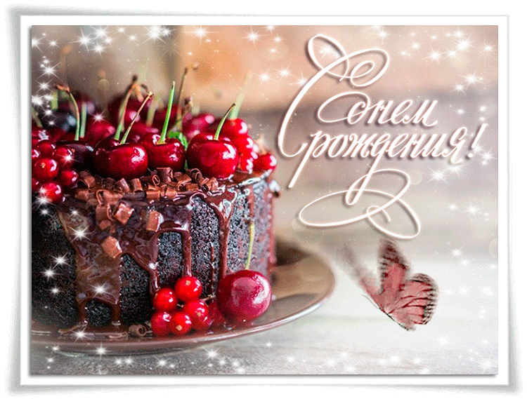 9. Мерцающая гиф картинка с днём рождения мужчине с тортиком с вишней!